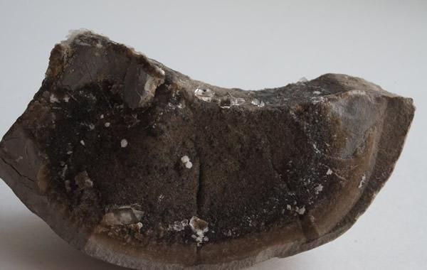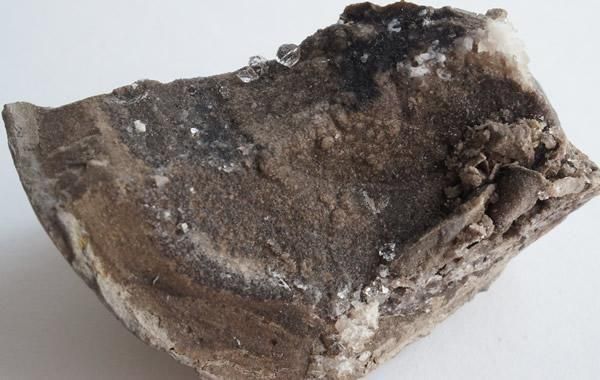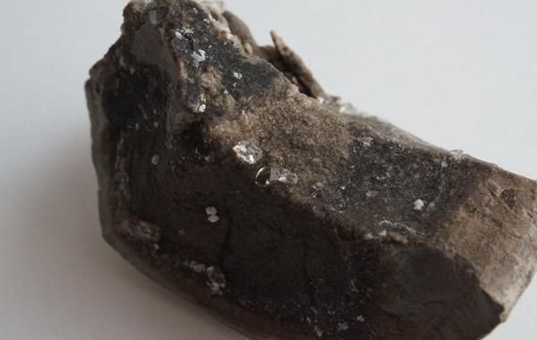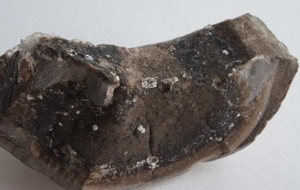 角度を変えながら観察すると小さな結晶がキラキラと光りだします。母岩とのコントラストがさらにきらめきを増幅させています。フランス産の眺めのいいクォーツです。