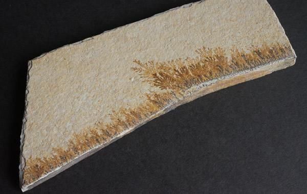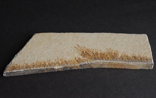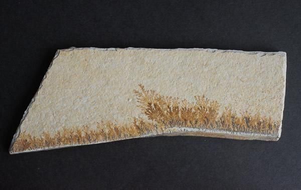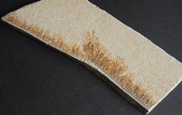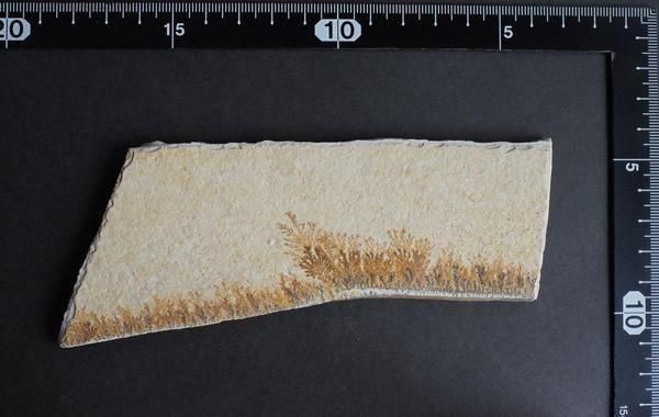 岩石の隙間に二酸化マンガンが入り込み、美しい枝状結晶が出来上がりました。 裏表に模様があり、どこか幽玄の美を感じさせます。