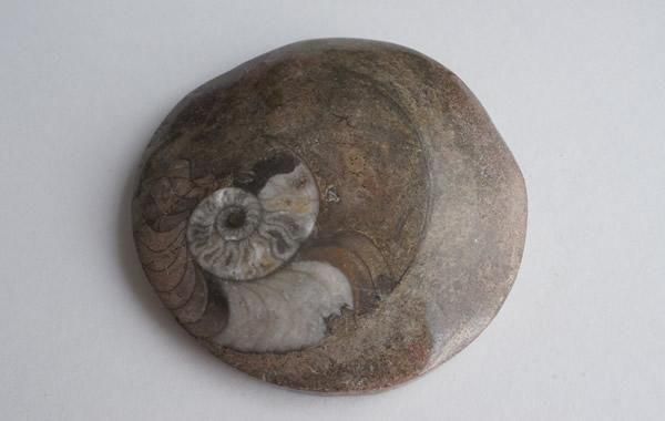 今から約4億1900万年前〜約3億5900万年前のデボン紀、アンモナイトの祖先ゴニアタイトの化石です。