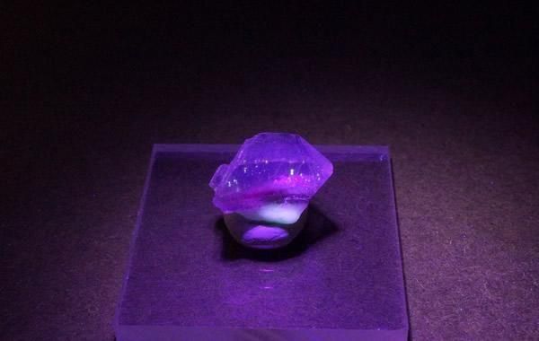 紫外線を照射すると赤く蛍光するパキスタン産フローライトです。 個体差はありますが、蛍光鉱物の面白さが味わえます。