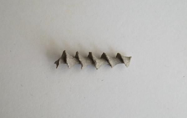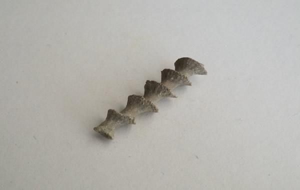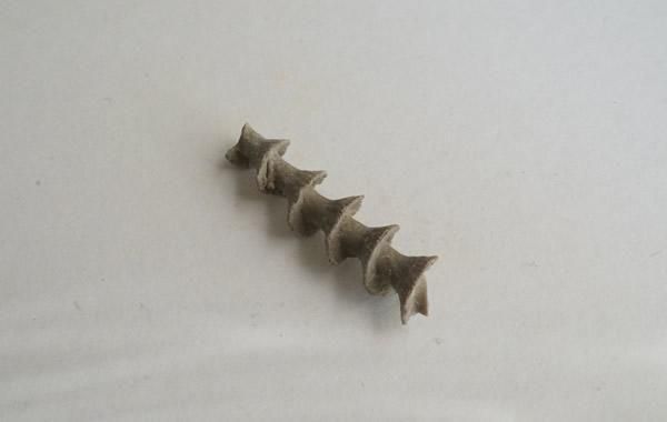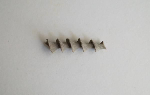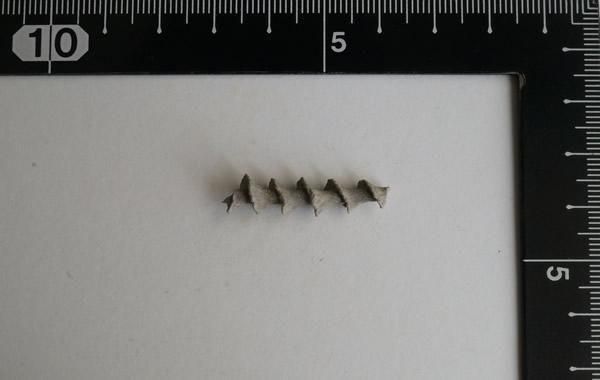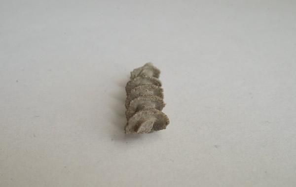 今から約3億2000万年前の石炭紀前期、コケムシ類アルキメデスの化石です。螺旋状の姿に親しみが湧きます。