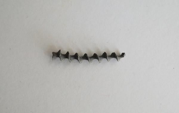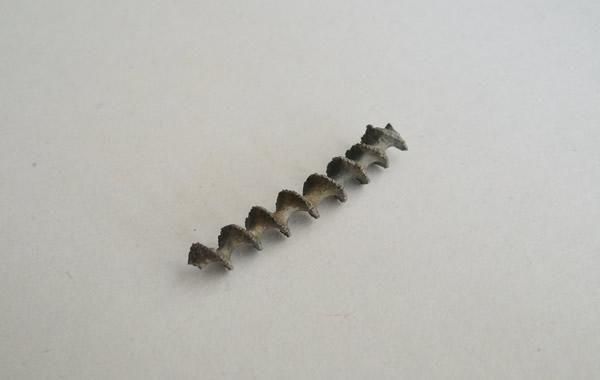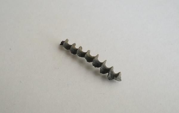 今から約3億2000万年前の石炭紀前期、コケムシ類アルキメデスの化石です。螺旋状の姿に親しみが湧きます。