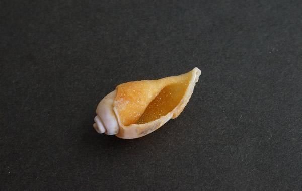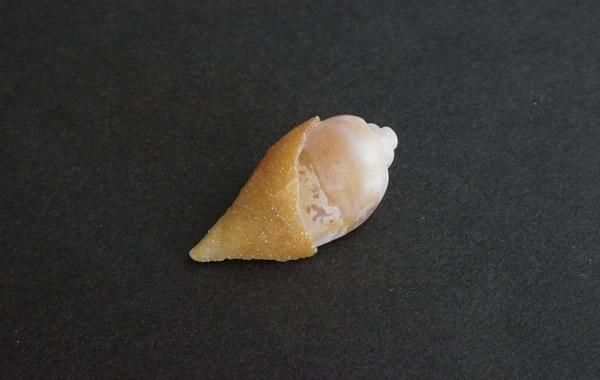 推定1億年以上前のものと思われる巻貝の化石です。巻貝の中でも珍しい左巻き貝です。 中央インドの自然のままの手つかずの丘で発見され、