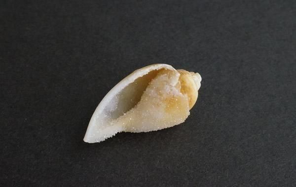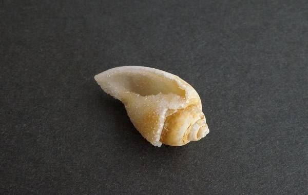推定1億年以上前のものと思われる巻貝の化石です。巻貝の中でも珍しい左巻き貝です。 中央インドの自然のままの手つかずの丘で発見され、