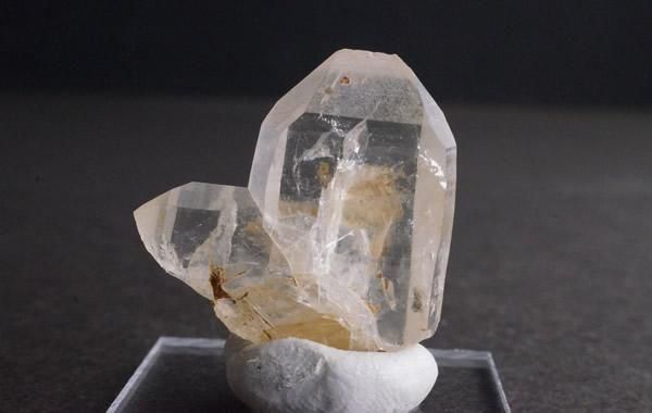ふたつの結晶が共有面を持ち成長しています。 そのカタチは想像を掻き立てる愛らしさがあります。 長崎県産の双晶の水晶です。
